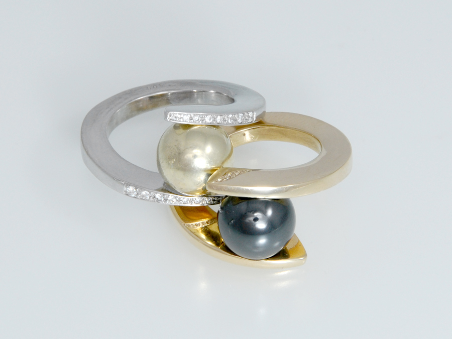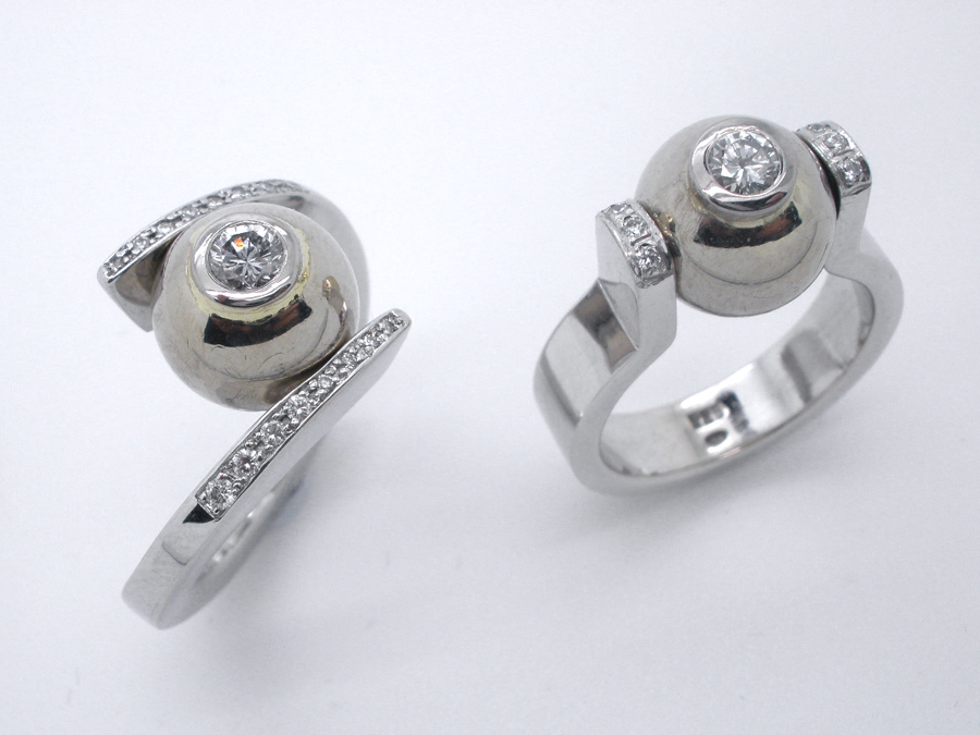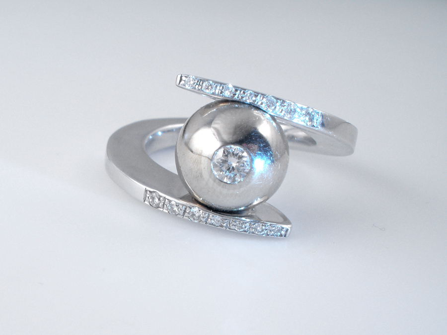 Kugelring schmal, Weißgold 585 Brillanten Wesselton Si 0,14ct u. 0,16ct