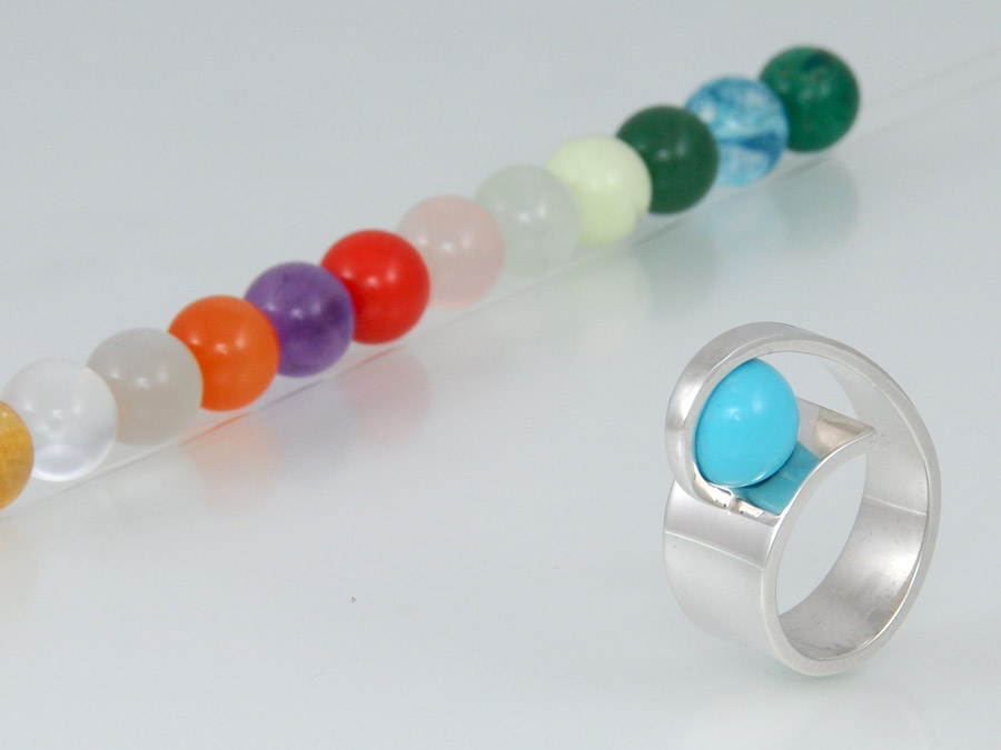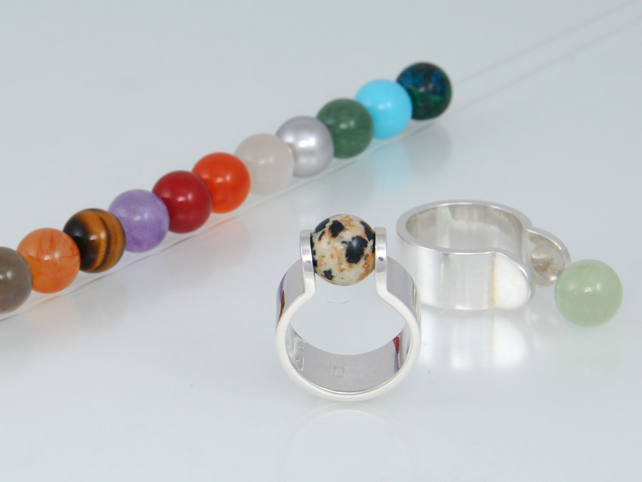 Playfully transform these amazing rings in seconds by simply clicking in your favorite gemstones from a set of beads that you can combine yourself.