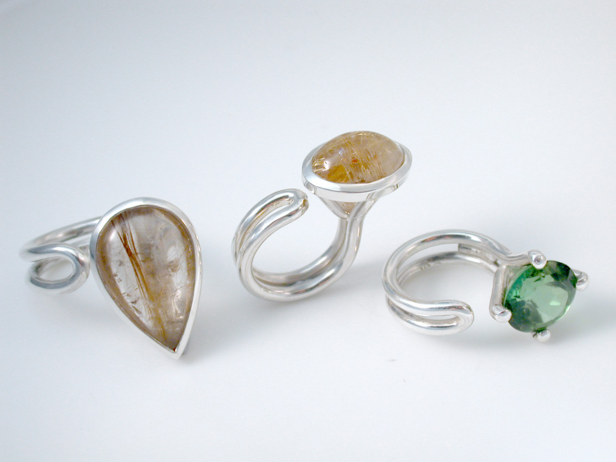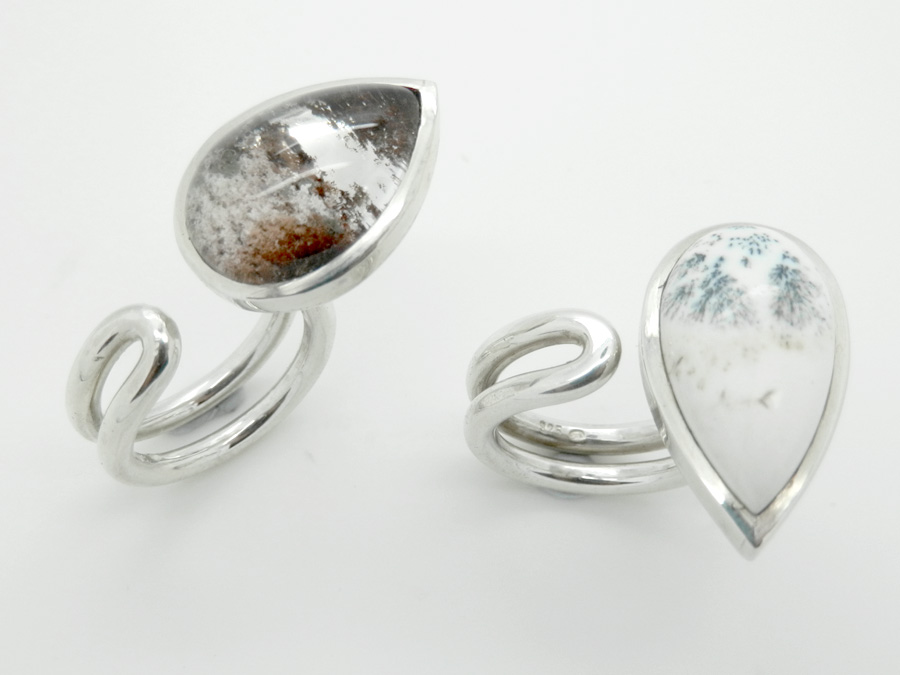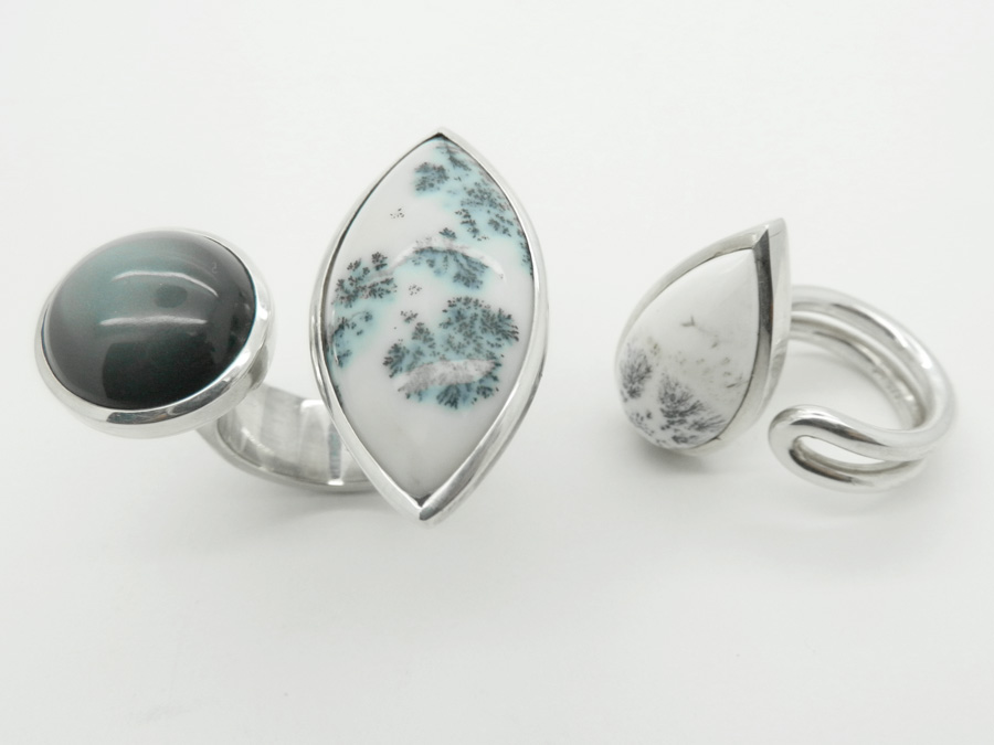Bottom left: Aquamarine, Labradorite, Silver (925)