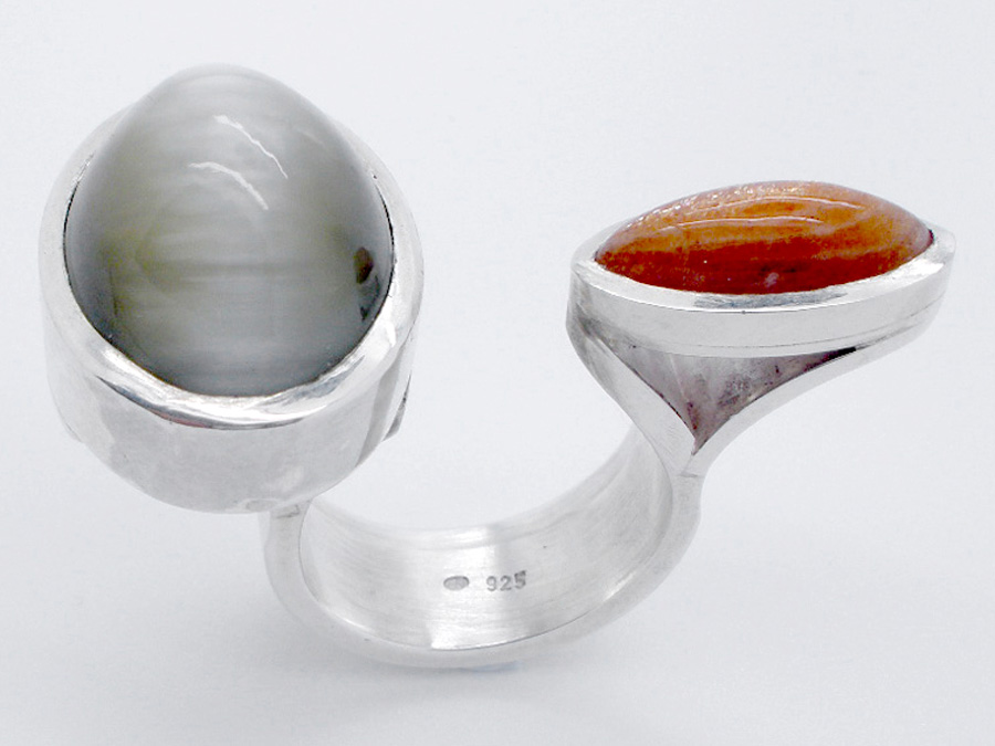 ZWISCHENRING (IN-BETWEENER) Katzenauge u. Sonnenstein, Silber 925