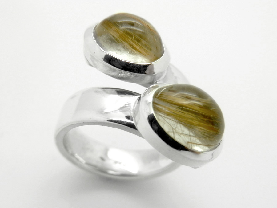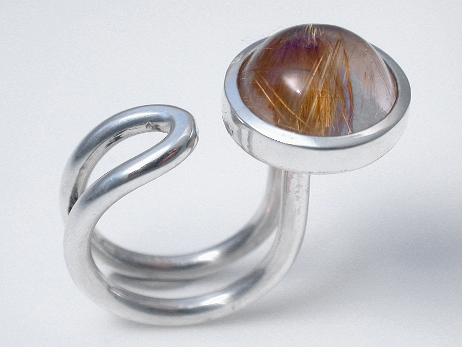 ZWISCHENRING (IN-BETWEENER) Rutilquarz cabochon rund, Silber 925