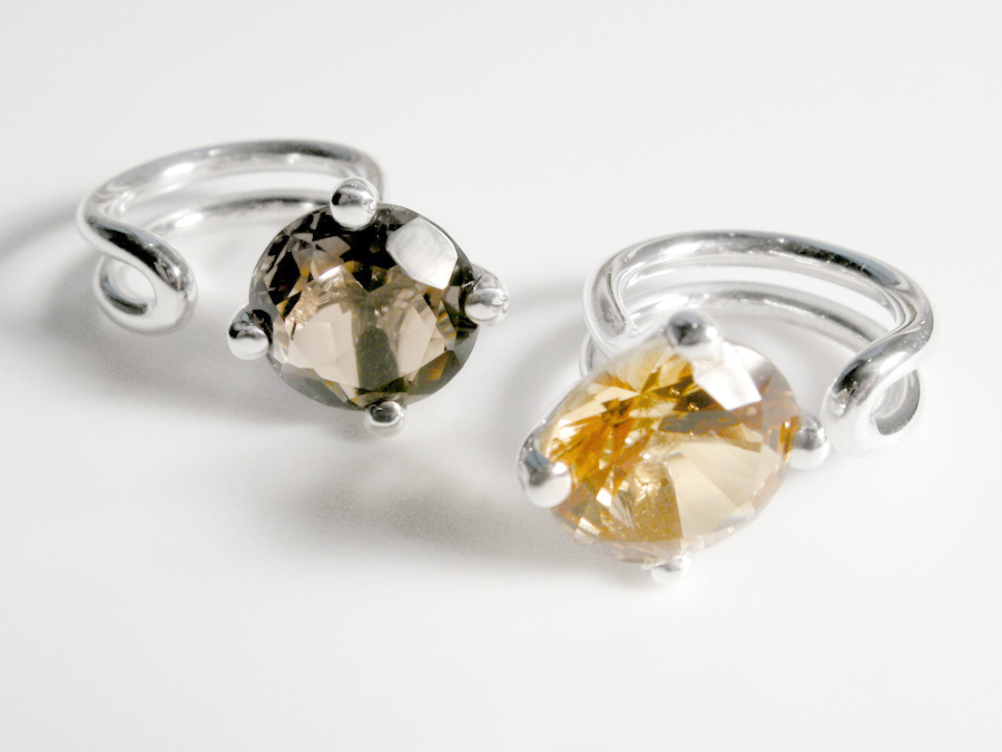 ZWISCHENRING (IN-BETWEENER) Citrin, Rauchquarz Silber 925