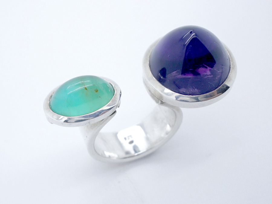 ZWISCHENRING (IN-BETWEENER) Amethyst, Chrysoprass, Ag 925